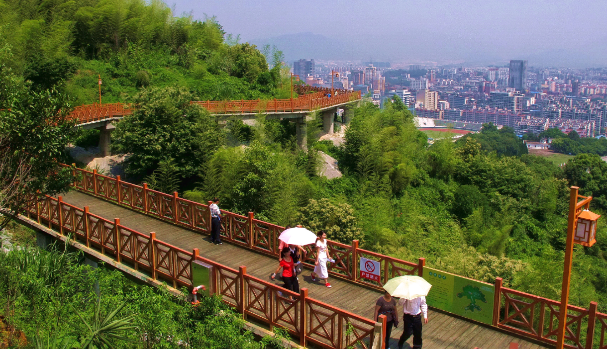 蓮花山底南環(huán)路地面標(biāo)高為330米,山頂標(biāo)高為490.606米,山高160米左右,山頂已開發(fā)為休閑場所,并建有世紀(jì)鐘樓,山腳可挖掘的景點(diǎn)不多,因此決定在半山腰開辟一條市民休閑的木棧道,將公園增加一個(gè)休閑觀光的好場所,并可成為蓮花山一道亮麗的風(fēng)景線。因此在半山腰422米高程建設(shè)一條環(huán)山的木棧道。為盡量少破壞山體植被,木棧道采用棧道橋形式,全長3781.88米,全寬3.5米(包括欄桿寬度),凈寬3.0米,蓮花山棧道橋工程總投資7610萬元。