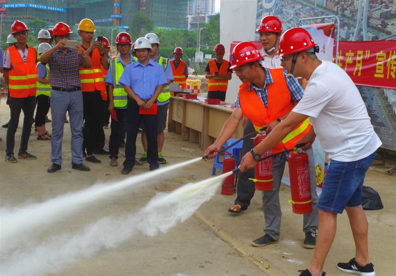 6月16日是“全國安全生產(chǎn)宣傳咨詢?nèi)铡薄.?dāng)日,龍巖城發(fā)集團與市城投公司組織人員分別前往中心城區(qū)華蓮西路一期、火車站站前高架橋、龍巖大橋高架橋、龍巖大道四期下穿工業(yè)路通道等四個項目工地,開展安全生產(chǎn)宣傳活動。圖為工作人員現(xiàn)場指導(dǎo)工人使用滅火器。
