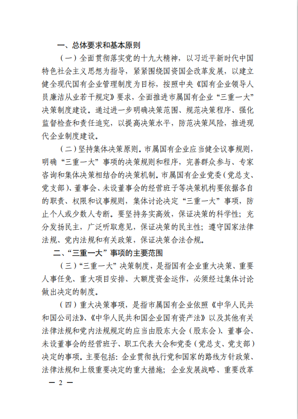 關(guān)于進(jìn)一步規(guī)范市屬國(guó)有企業(yè)貫徹落實(shí)“三重一大”決策制度實(shí)施意見(國(guó)資黨委[2020]21號(hào))